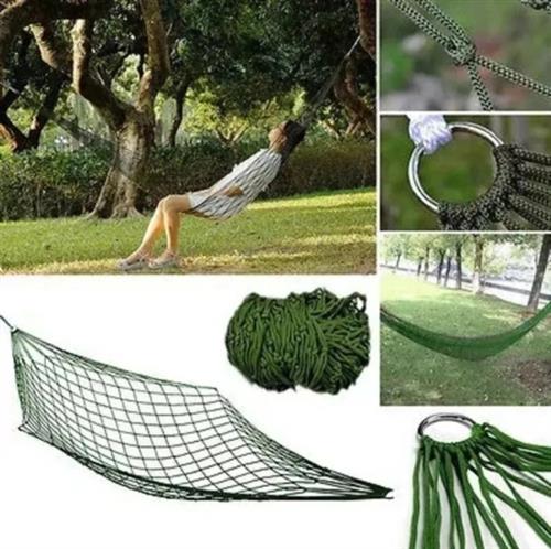 Liviana, fuerte y compacta hamaca de poliéster, confeccionada manual el polietileno trenzado y tejido para alto peso, segura confortable, incluye bolso de transporte.