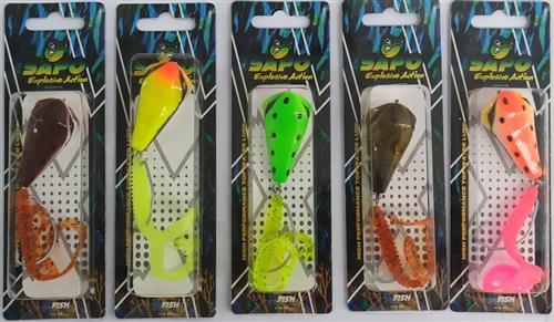 Polimero de alta densidad. Ojos llamativos, cola y patas de rana en goma. se recomienda para Dorados, taruchas y chafalotes. Rattling muy sonoro. Colores Varios EFECTIVOS.